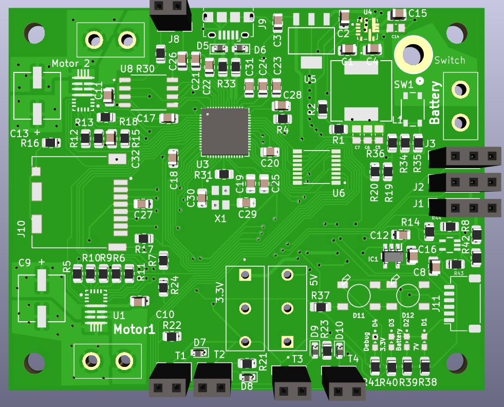I am currently working on a small beetleweight combat robot. I have been designing the robot in my spare time and hope to compete at NHRL late this year or early next year. Chimera is a lifting-flamer robot that I am designing with fully custom electronics. I am desinging off-meta because my primary interest is to build for fun, not to build a particularly competitive robot. The PCB and electronics were designed in Ki-Cad. I am currently bringing these first development boards up. I have started manufacturing the mechanical components of the robot, with wheels, axles, and other systems being produced.